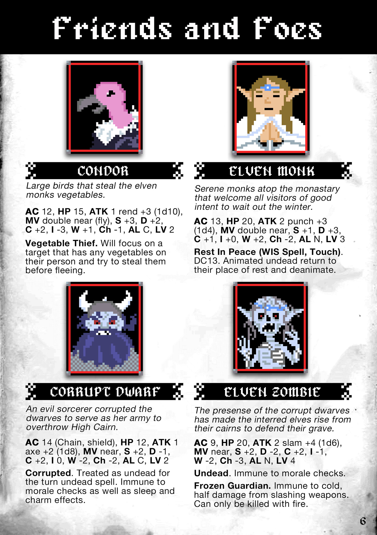 - 6 unique friends and foes, complete with stat blocks